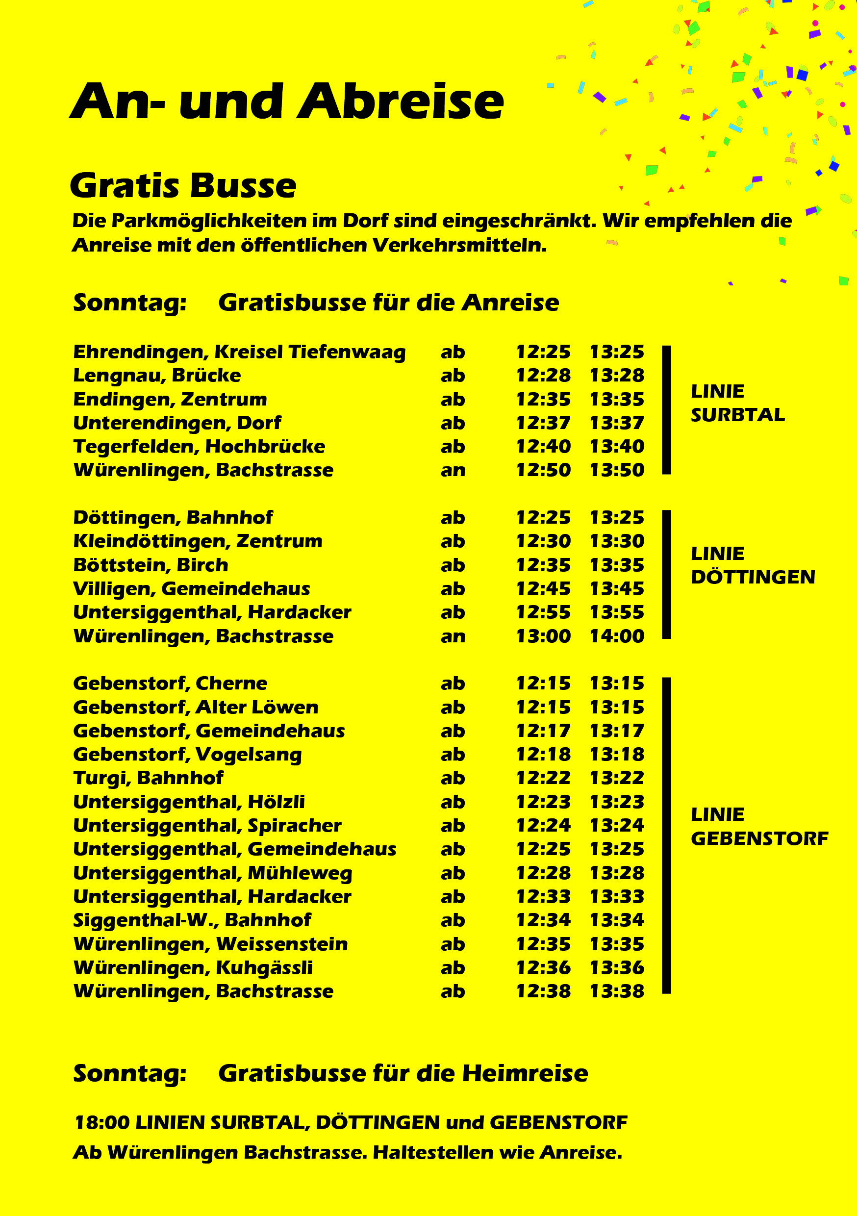 Wir haben auch dieses Jahr Gratisbusse für die Heimfahrt nach dem Umzug am Sonntag.